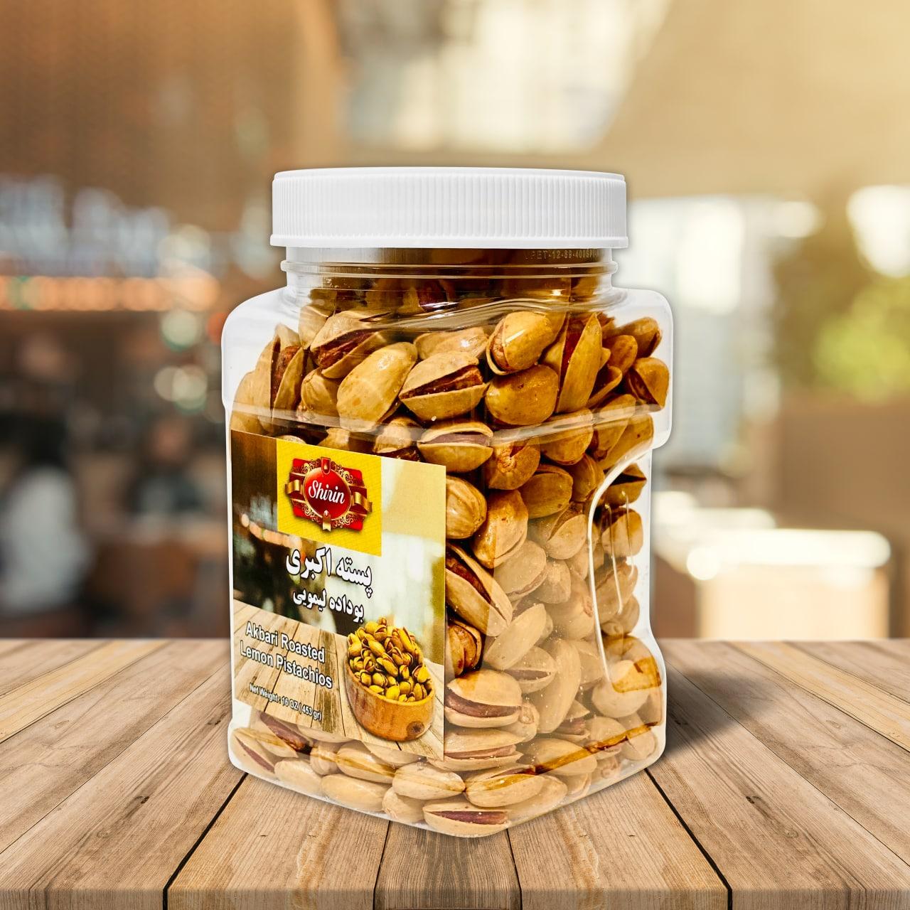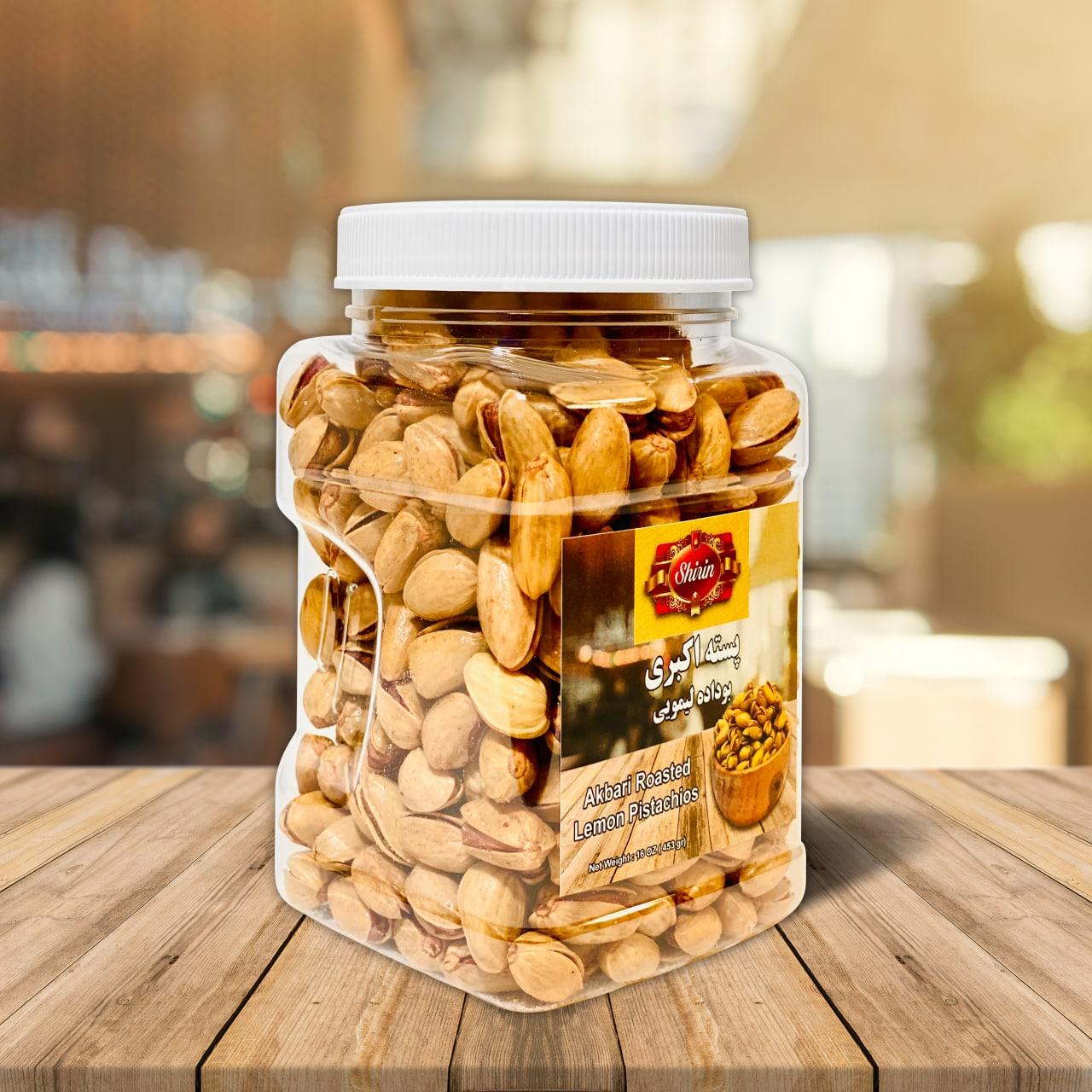 SHIRIN Akbari Roasted Lemon Pistachios 16 OZ, پسته اکبری بوداده لیمویی